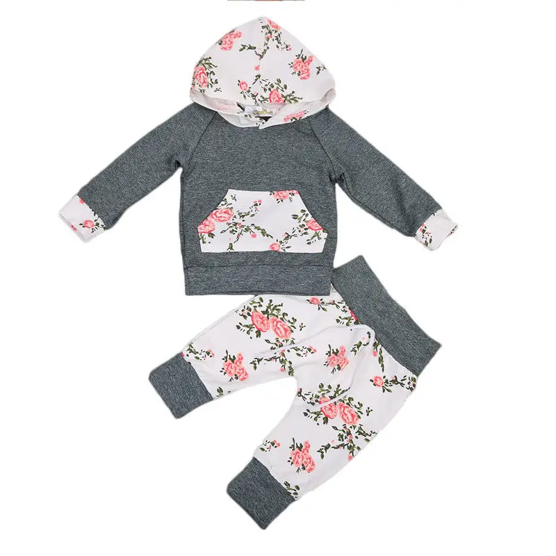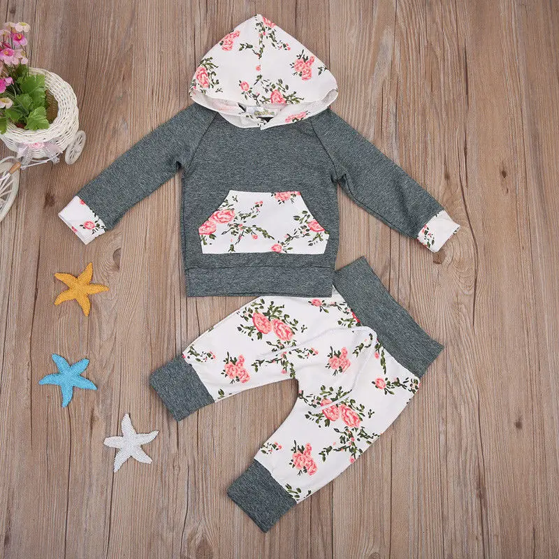 Buy 2 pieces Baby Girls Long Sleeve Flowers Hoodie Tops and Pants Outfit with Kangaroo Pocket Clothes Right Here and Right Now Just for USD US $4.42, Price will be rise up at any time without notification and I cant guaranted that the stock is still available tommorow or next hour. So Please Save It Now!