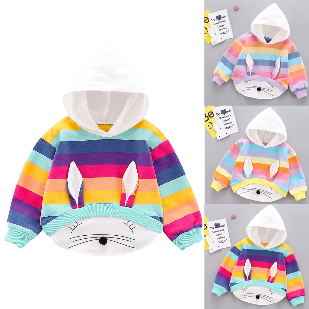 Special Price for 2019 Autumn Kids Hoodies Girls Boys Cute Ranibow 3D Rabbite Ear Print Hooded Pullover bluza dziewcz