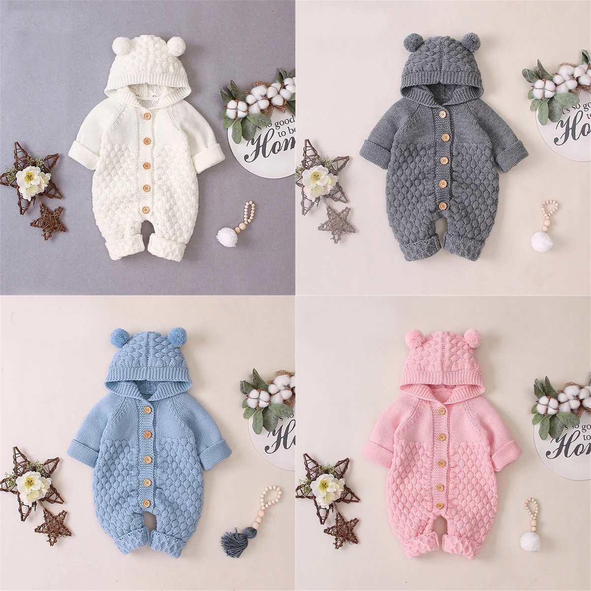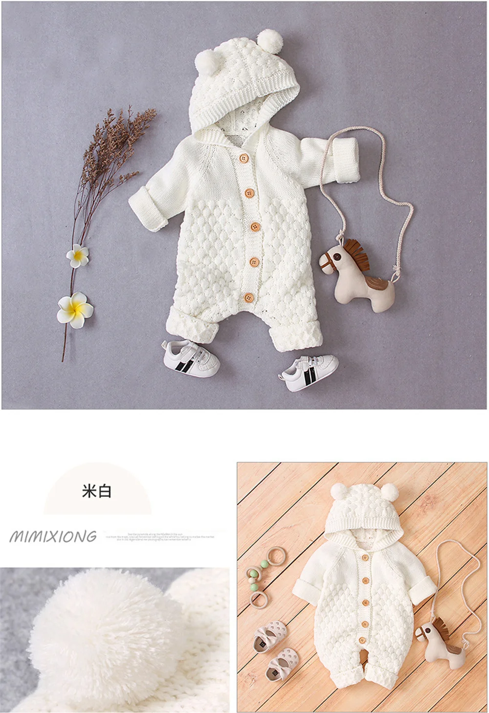 Special Price for 2019 Winter Infant Baby Boy Girl Clothes Wool Hooded Knit Cotton Romper Cute Cartoon Hoodies Jumpsu